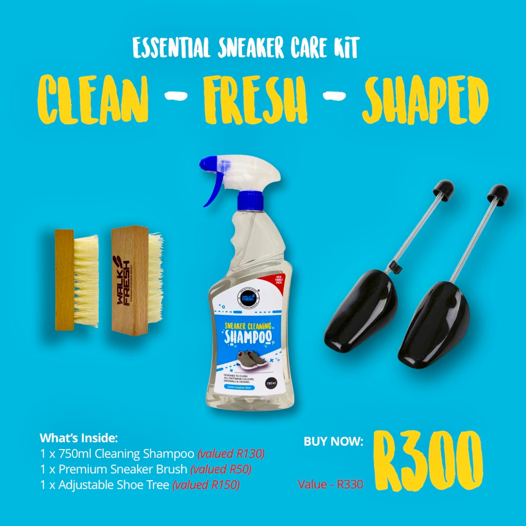 The ultimate all-in-one sneaker maintenance bundle. Includes premium cleaning shampoo, a sneaker brush, and a shoe tree to help you clean, shape, and preserve your kicks like a pro.