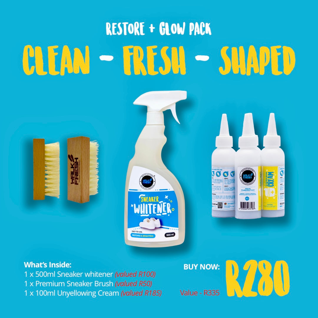 The Walk Fresh White Sneaker Care Bundle is the complete 3-in-1 care bundle for sneakerheads looking to reverse yellowing, refresh whites, and prep kicks for their next wear. Whether you’re cleaning Air Forces, Jordans, or canvas classics, this bundle gives you pro-level results at home.